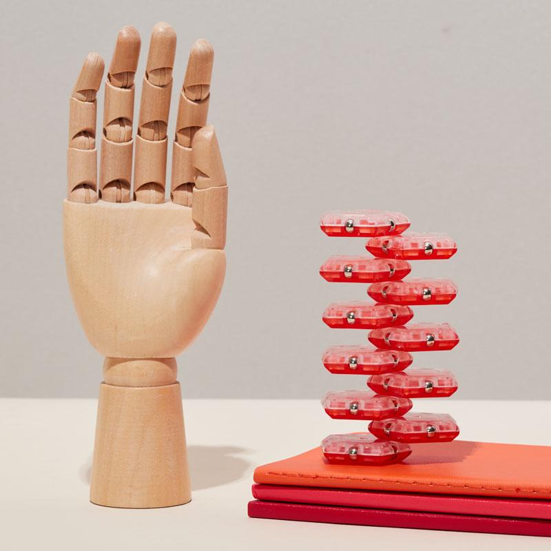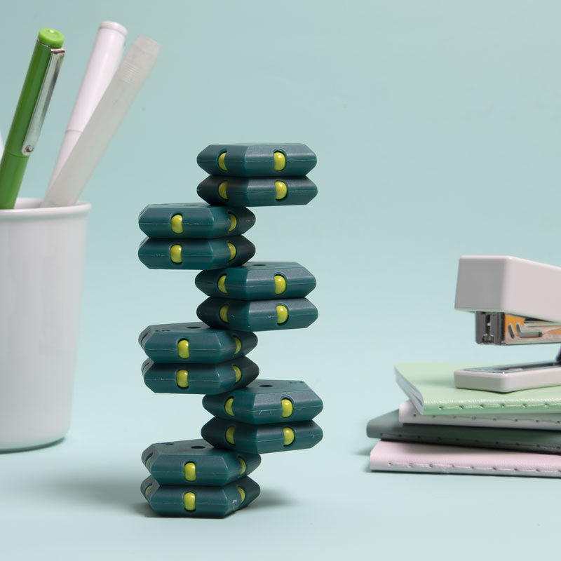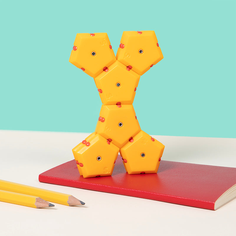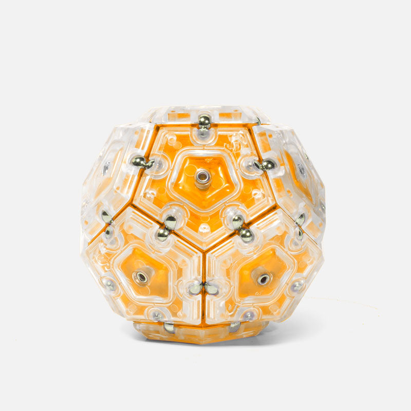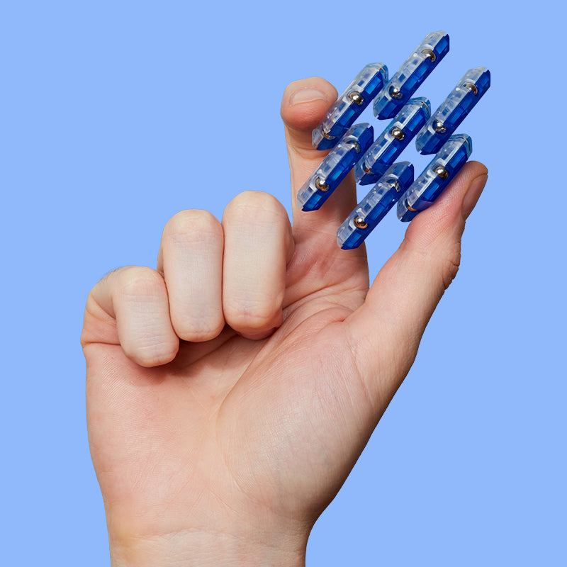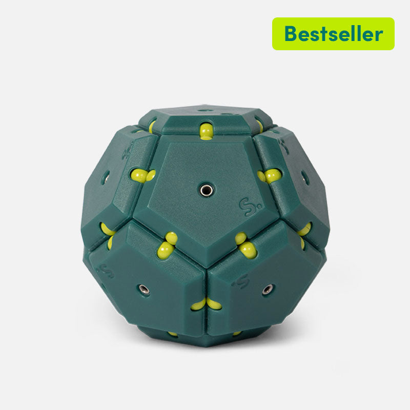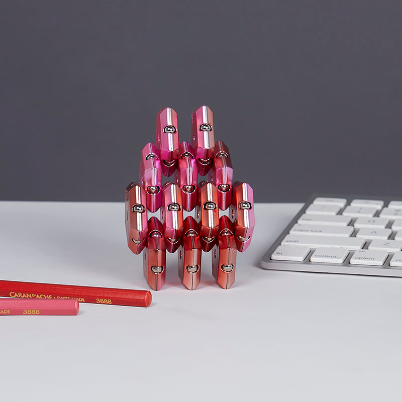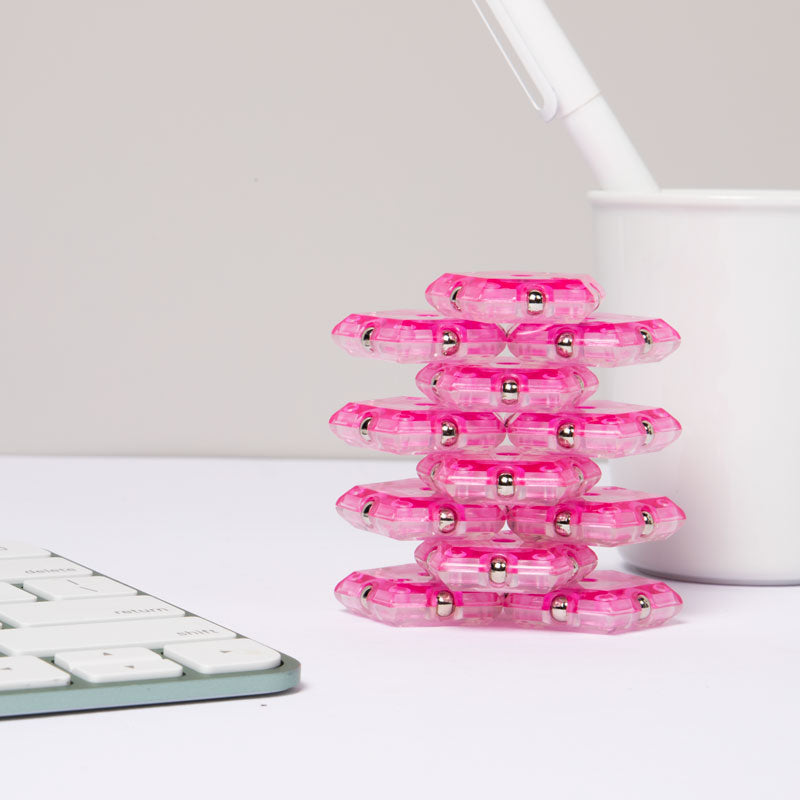 On-the-desk or on-the-go, Geode is the perfect fidget desk toy. Each set includes 12 pentagons or triangles that align and snap into the perfect sphere. Combine colors and shapes for bigger builds and more fun!